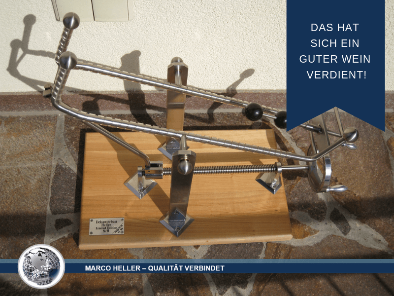 Der Dekanter ist gefertigt in Edelstahl auf einer edlen Holzplatte!